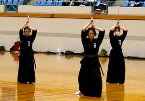 女性剣士は袈裟斬り・中学生は横一文字斬り最も難しい斬り方です。